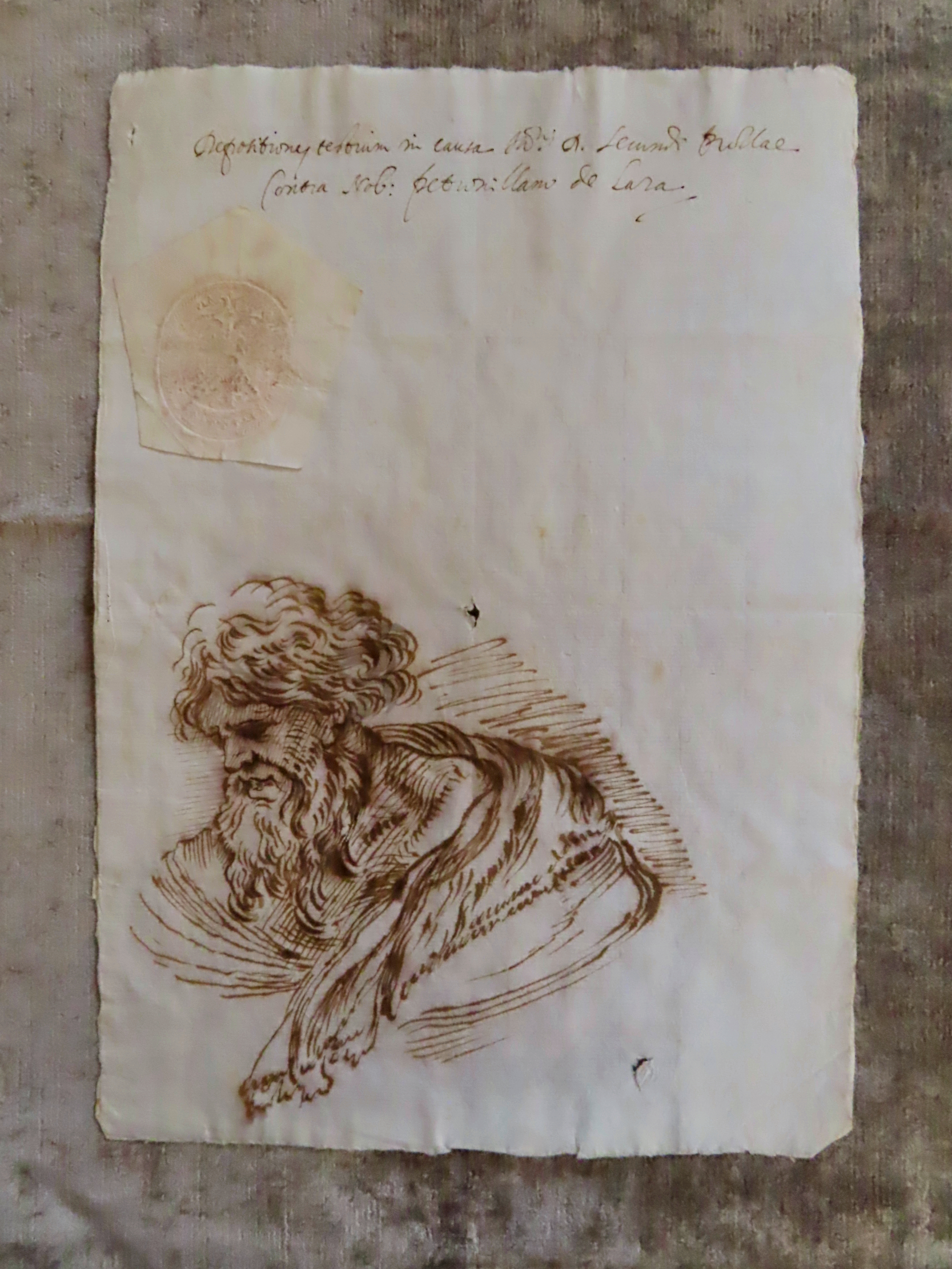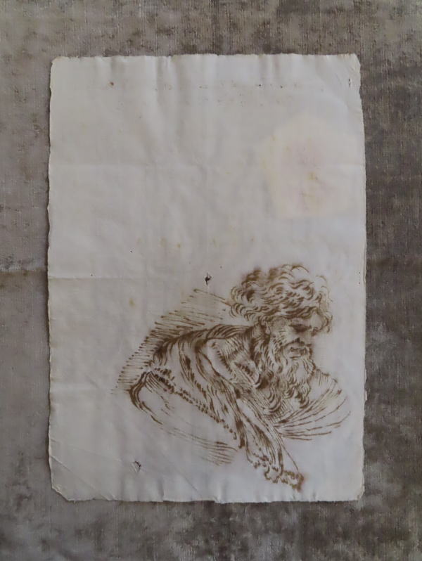 | フィレンツェのコレクターの収集品からの作品。 大きな作品の部分でしょうか? 羽根ペンで描かれた、18世紀(推定)の素描です。 直筆のペンの強弱。 的確なデッサン力。 |