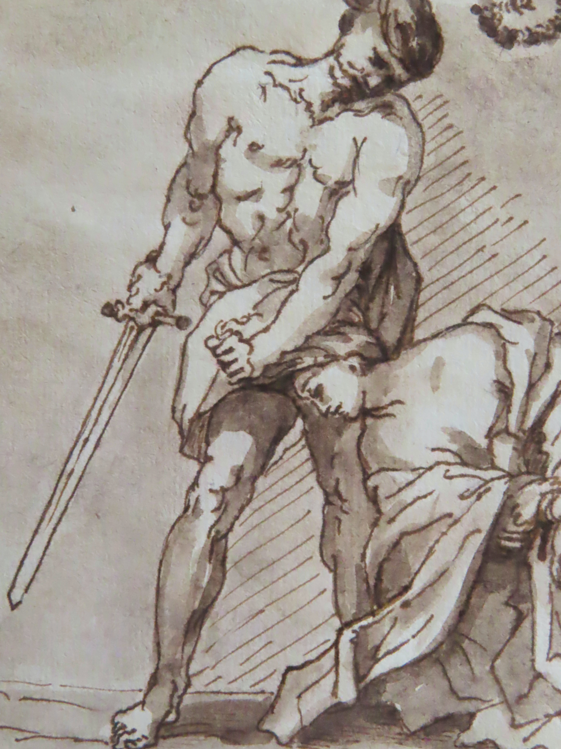 | フィレンツェのコレクターの収集品からの作品。 羽根ペンで描かれた、18世紀(推定)の素描です。 直筆のペンの強弱。 的確なデッサン力。 聖女の殉教の場面です。 今まさに、首を斬ろうとしながらも、どこか悲し気な男。 |