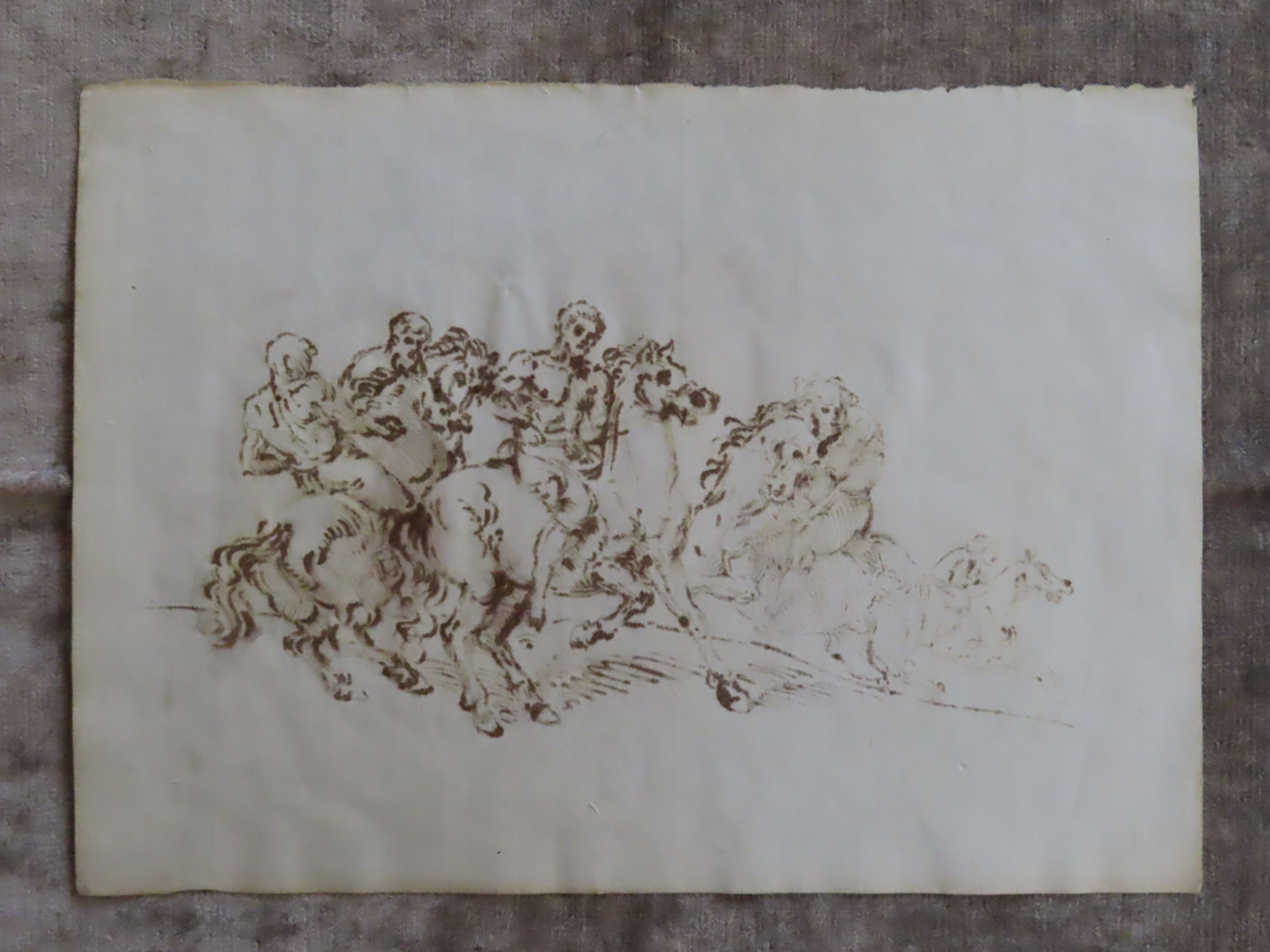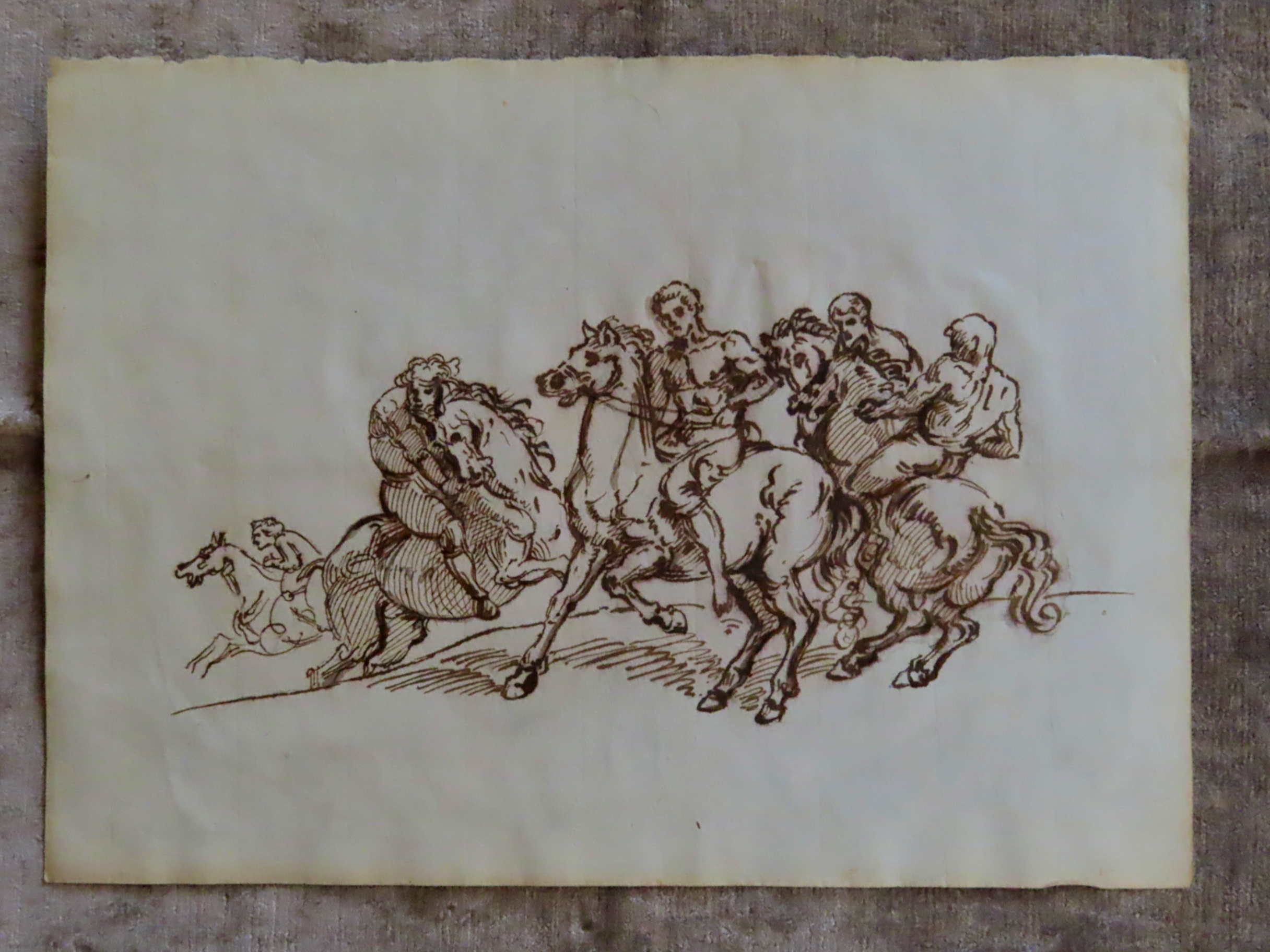 | フィレンツェのコレクターの収集品からの作品。 馬の躍動感の習作。 羽根ペンで描かれた、18世紀(推定)の素描です。 直筆のペンの強弱。 的確なデッサン力。 |