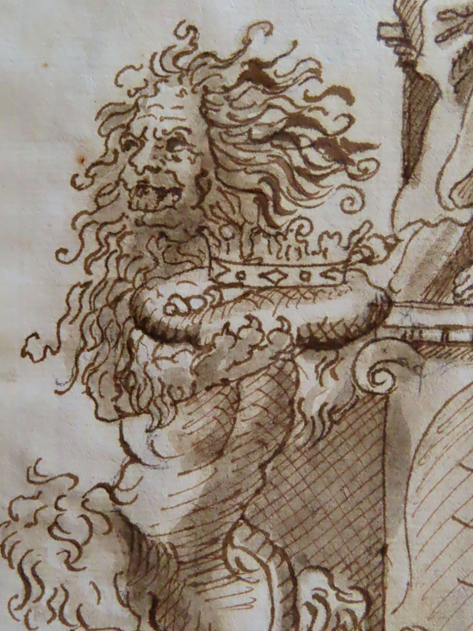 | こちらは、王冠と王笏を捧げ持つ、ライオン 。 |