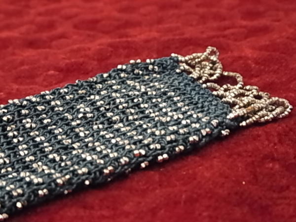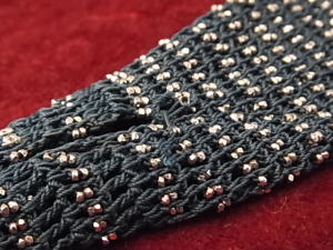 (右)コインを入れる口の上に、小さな編地のホツレ。