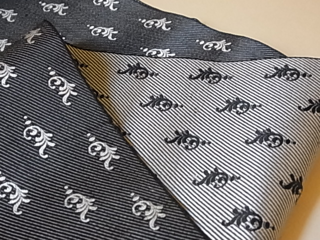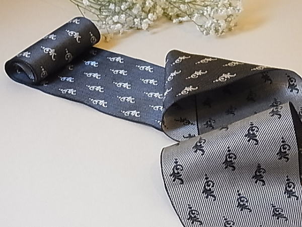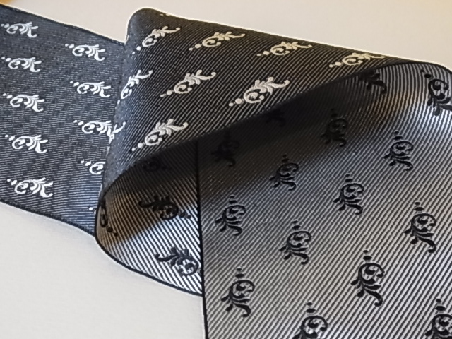 | リバーシブルになった織りリボン。 マニッシュな意匠が魅力。 |