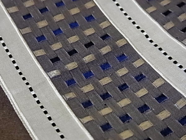 | このようなボーダー部分のハズレが、両端の方に計10cmほど、あります。 ※このお品物には送料が含まれていません。送料は、単品でも複数お求めでも、一律1.000円です。 また、軽いものですので、他のお品物と同梱できれば、送料は無料になります。 |