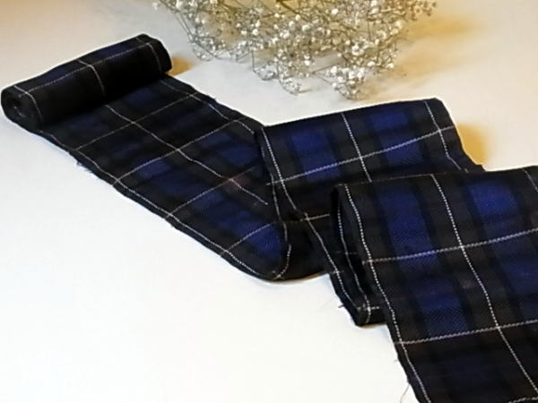 R-305 茶×紺のクラシックタータンチェック フランスのコットン短冊リボン |