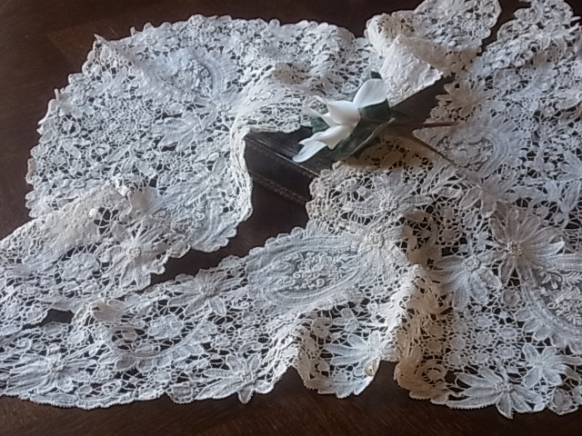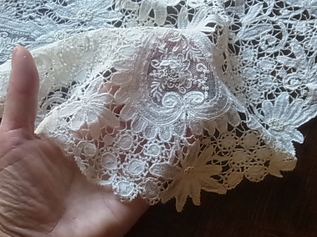 | ウエディングドレスにも、素敵かも・・・(ちなみに、ビクトリア女王のドレスとベールは、白いホニトンレースでした)。 ※カーソルを画像に置きますと、少し違う角度の写真がご覧になれます。 |