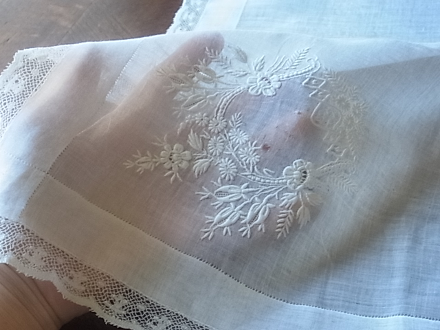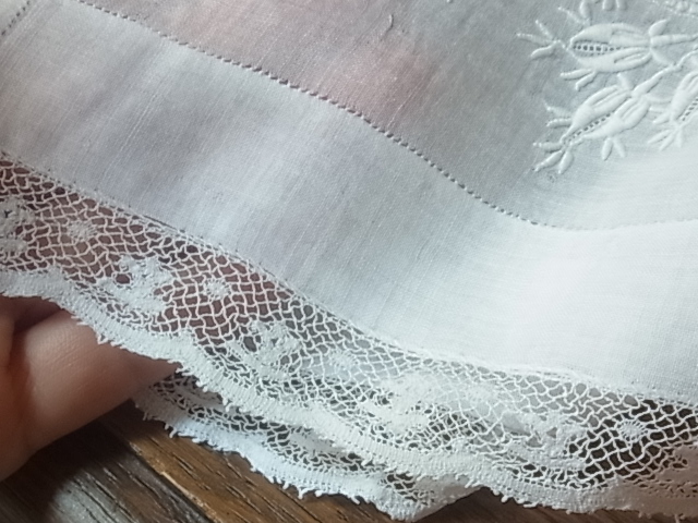 | 周りのヴァランシェレースはきれいな状態です。 ハンカチから取り外すことも可能です。 |