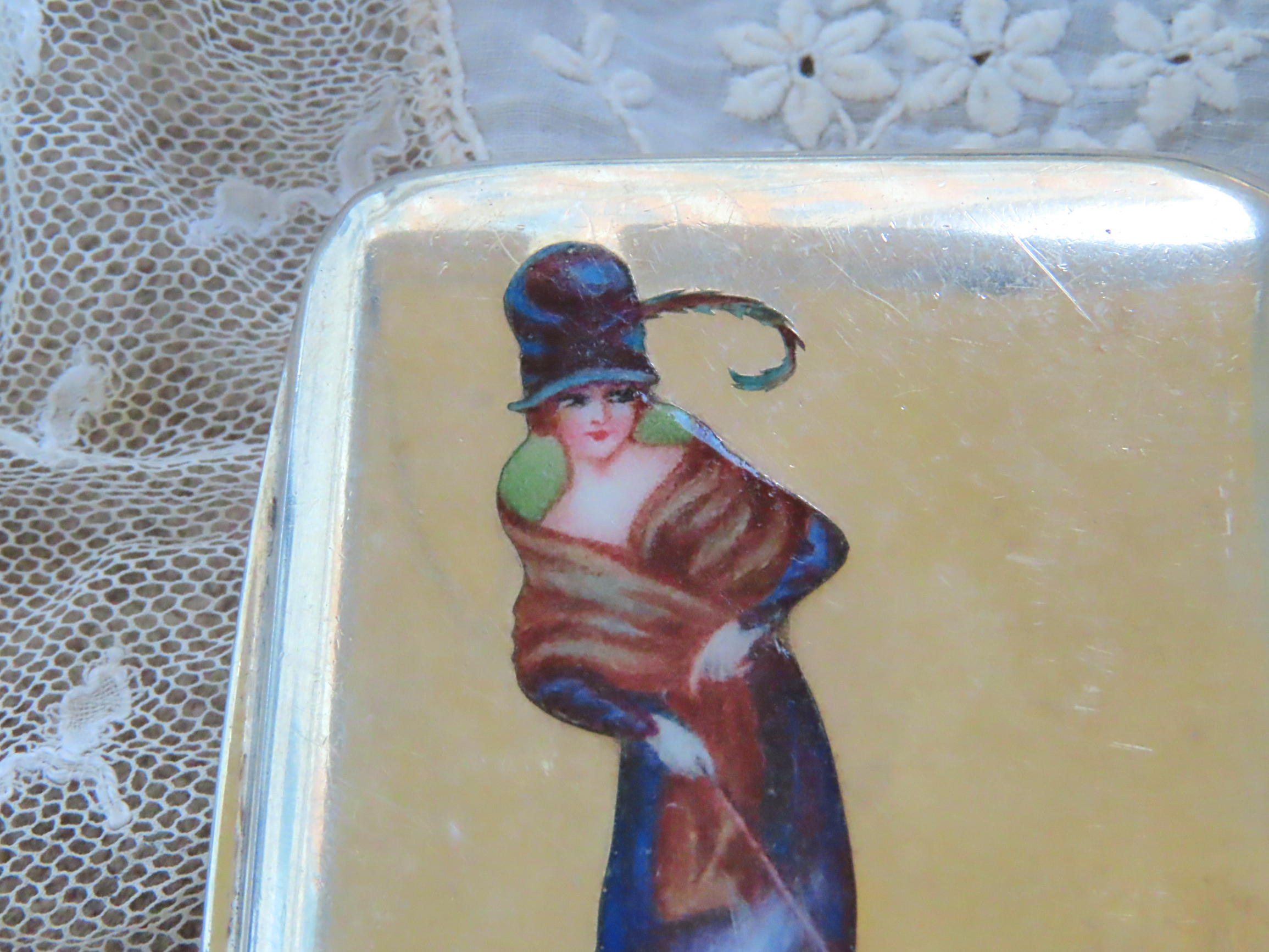 | ArtDeco Enamel painting Silver cigarettes case circa1920-1930 *excellent condision