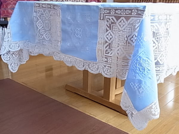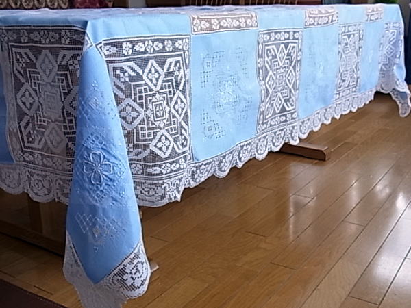 天板が104cmX182cmのテーブルですと、モチーフのグリッドがキッチリと収まります。