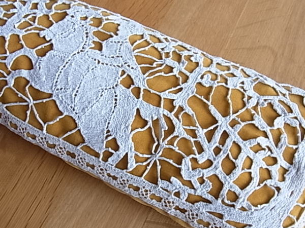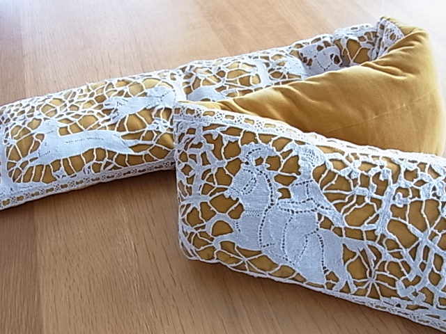 辛子色のビロードクッションは、レースの制作より後に、付け替えられている可能性があります。