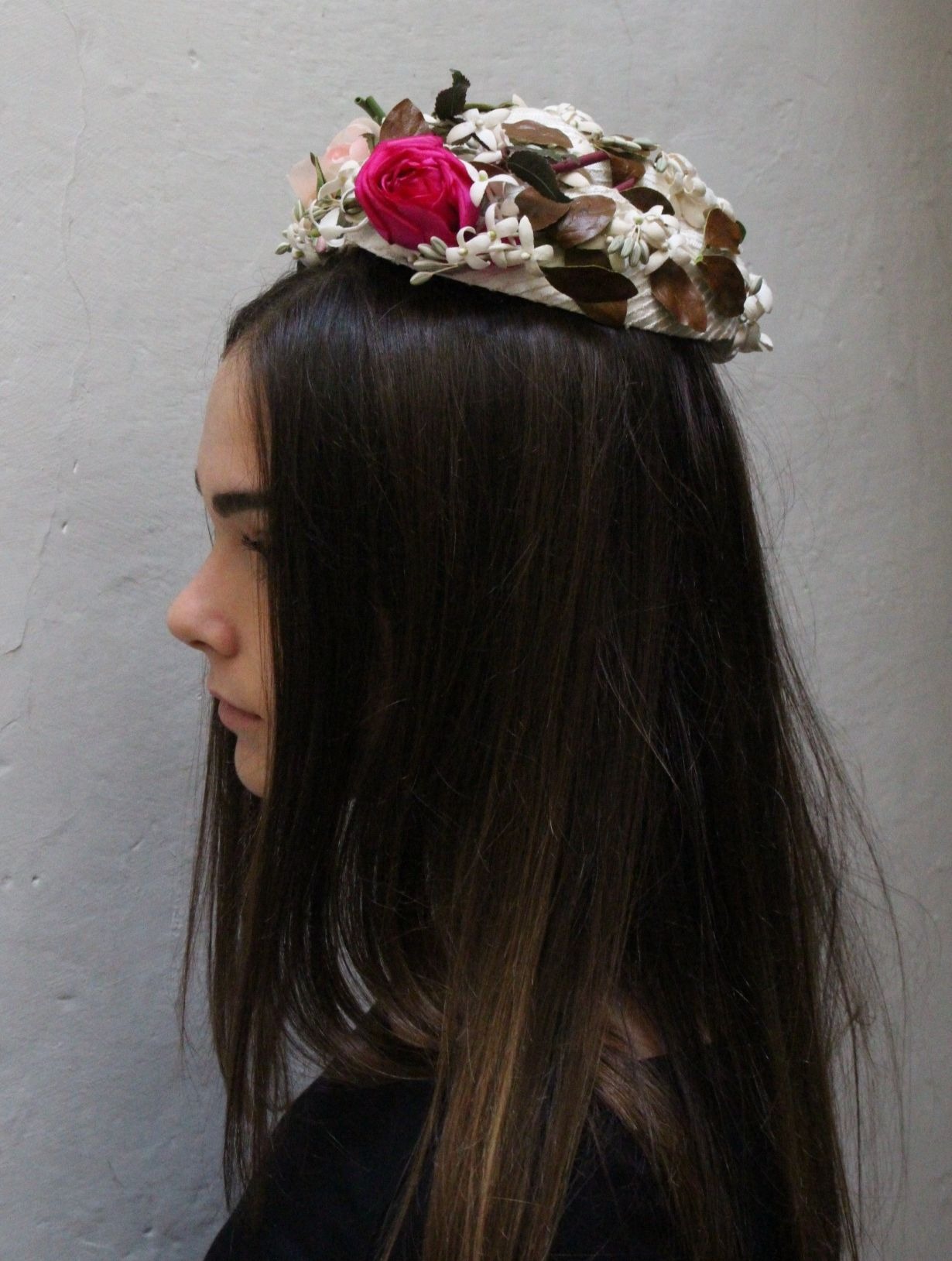 頭に被るものではなく、髪をアップにしてシニョンにかぶせたものです。