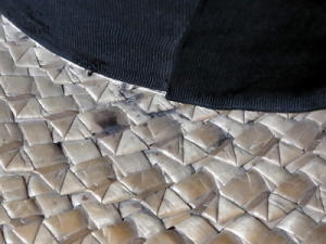 パリヤを平たくしたものを、織り込んで作られていますが、たたくとポンポンと音がするほど、硬く成型されています。