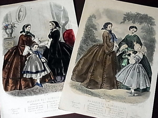 | 1857年と1859年の、手彩色のファッション画です。 この2枚を、ドレスと一緒にお付けします。*^^* |