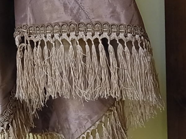 | この時代のスカート幅は広く、裾が長く広がったスカートに、このアッパースカートが重ねられました。 (下のスカートは失われています) 高級品ほど、アッパースカートが付けられたそうです。 |