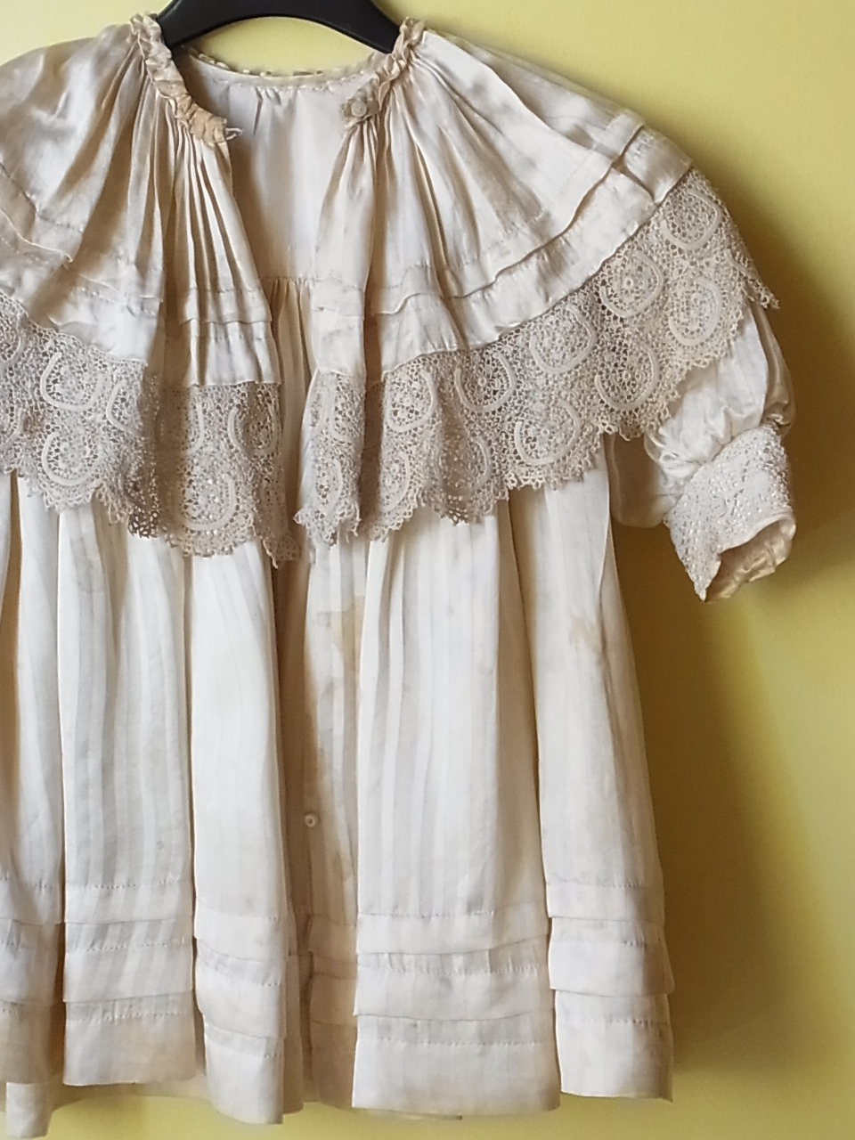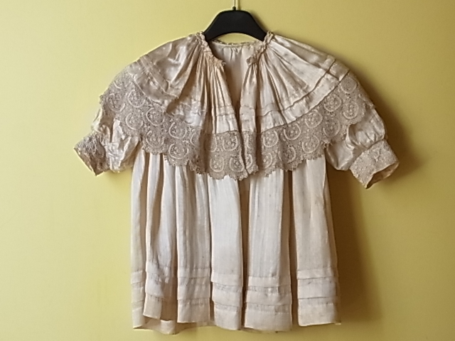 | 20世紀初頭の、シルクの子供用コート。 厚みのあるサテンシルクです。 ※カーソルを画像に置くと、後姿の写真がごご覧になれます。 |