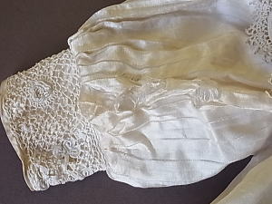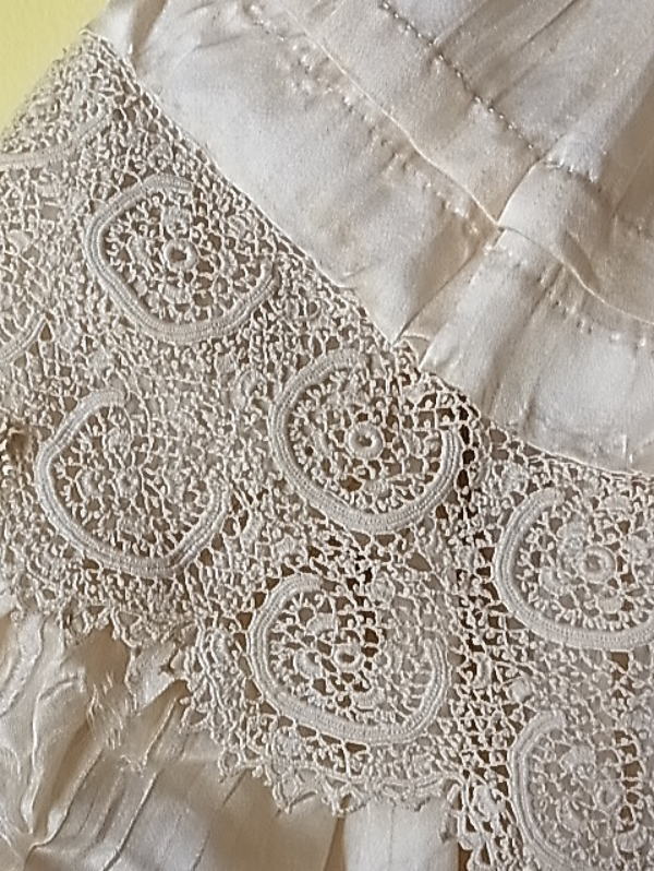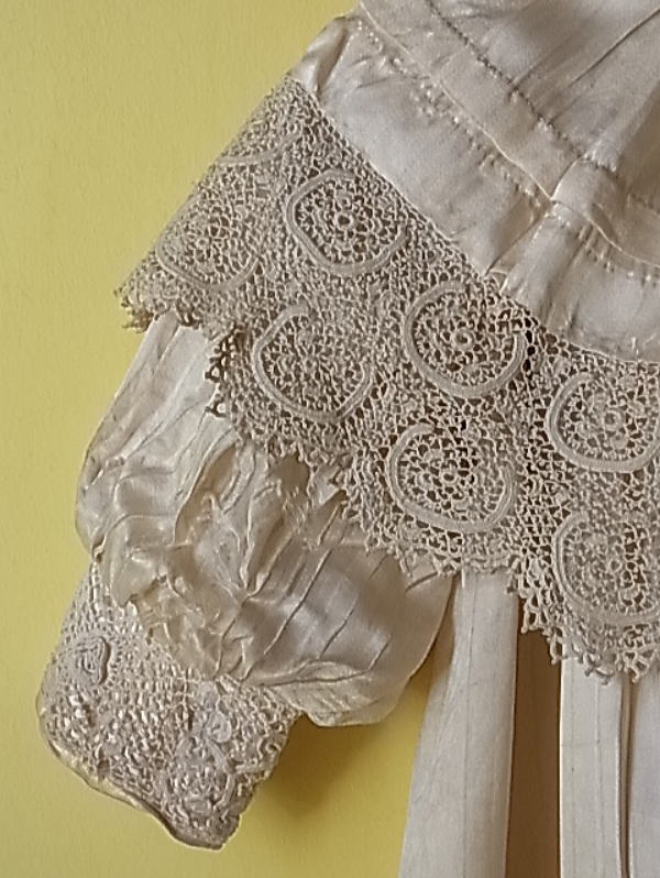 | 幅8cmの、ロマネスク教会のバラ窓のような、アイリッシュクロシェレースが襟を飾ります。 |