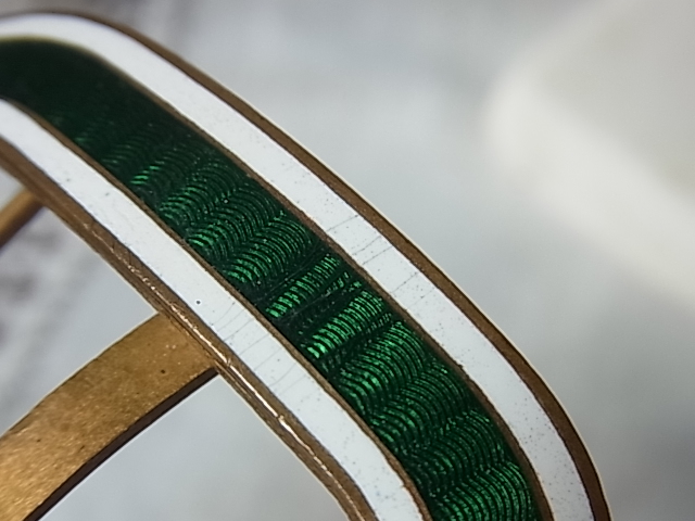 よくよく見ないと分からない程度ですが、グリーンのエナメル部分に擦り傷(左)、白のエナメル部分にライン(右)があります。