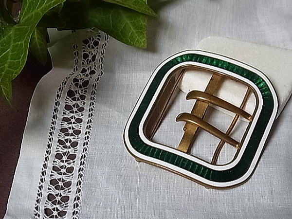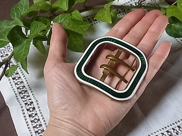 1940〜1950年頃の、ギロッシュエナメルのバックルです。