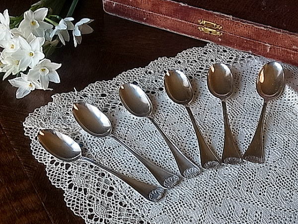 | 1930−40年代の銀製のティースプーンです。 6本セットです。 |