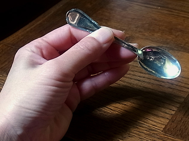 アンティークのティースプーン独特の、楕円形。 ※カーソルを画像に置くと、違う写真がご覧になれます。 |