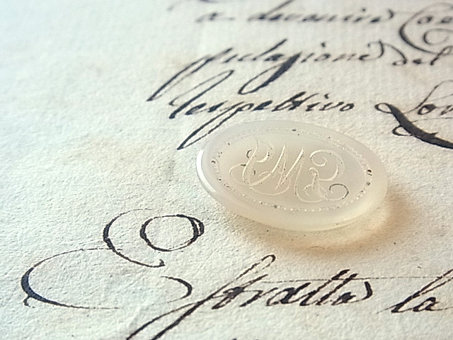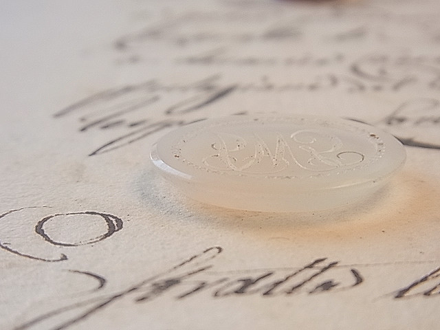 | ホワイトカルセドニーのインタリオ。 本来、フォブシールに使われるパーツです。 柔らかな印象のオーバルカットに、モノグラム。 優雅なイタリック体で、G M I と見て取れます。 半透明の乳白色のカルセドニーです。 ※画像にカーソルを置くと、裏側からの写真がご覧になれます。 |