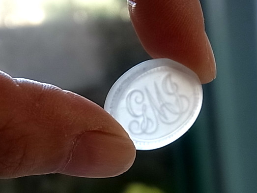 | 裏面から撮影しています。 半透明で、インタリオが透けて見えます。 |