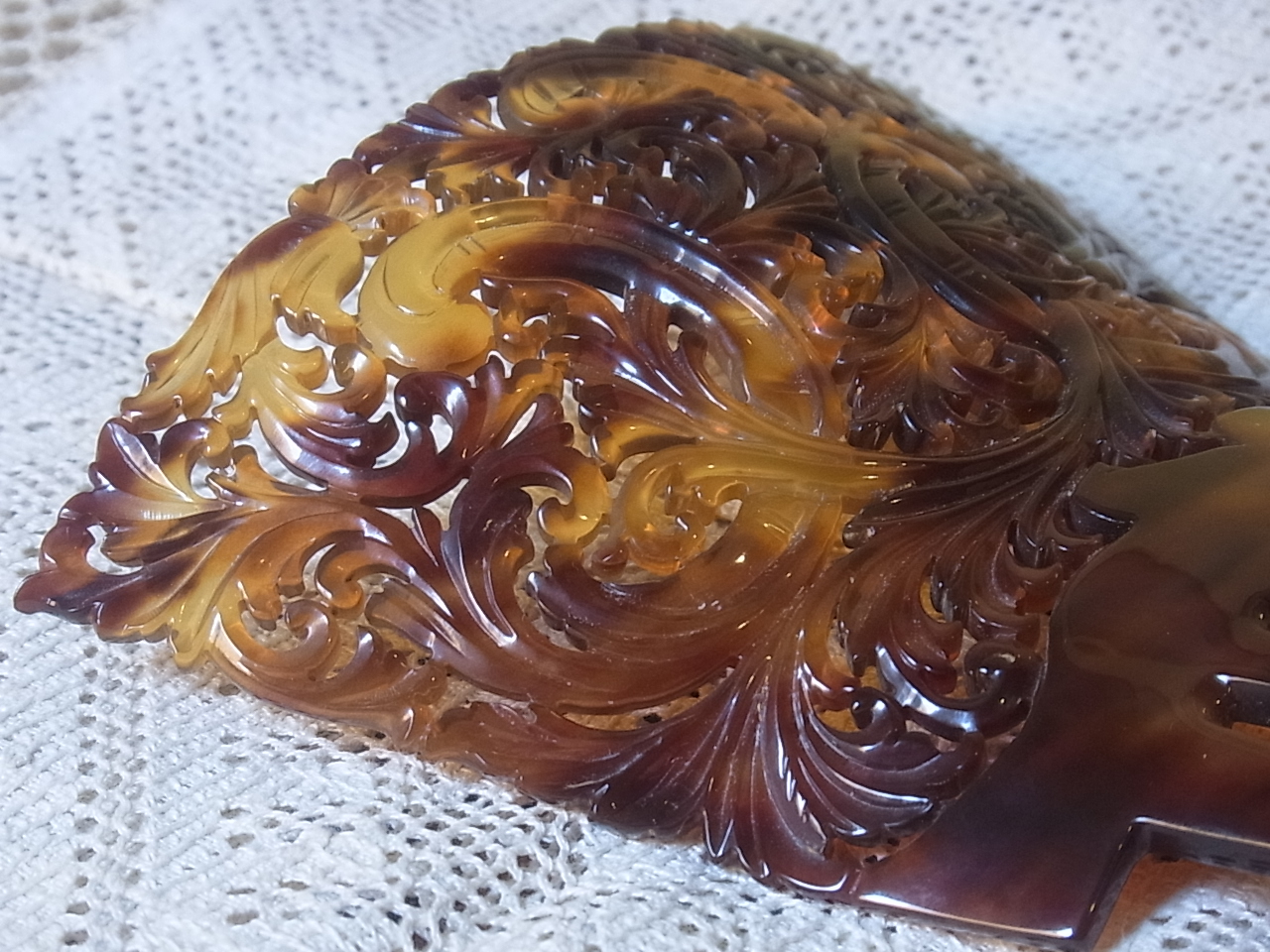 | ローマの装身具店のデットストックが、親族の家で長年保存されていたものなので、未使用品。 完品です。 保存状態良く、櫛の部分にも擦れなど無く、大変に艶やかです。 ※カーソルを画像に置くと、違う角度の写真がご覧になれます。 |