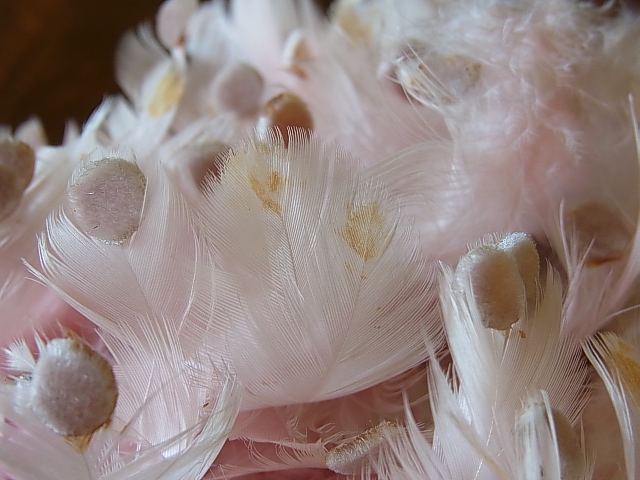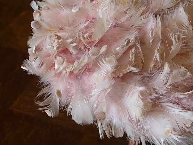 フェザーの先に、ベルベットの丸いドットが付いています。