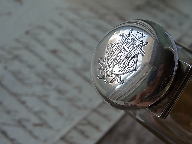 1898年製造、英国製の携帯用ウイスキーボトルです。