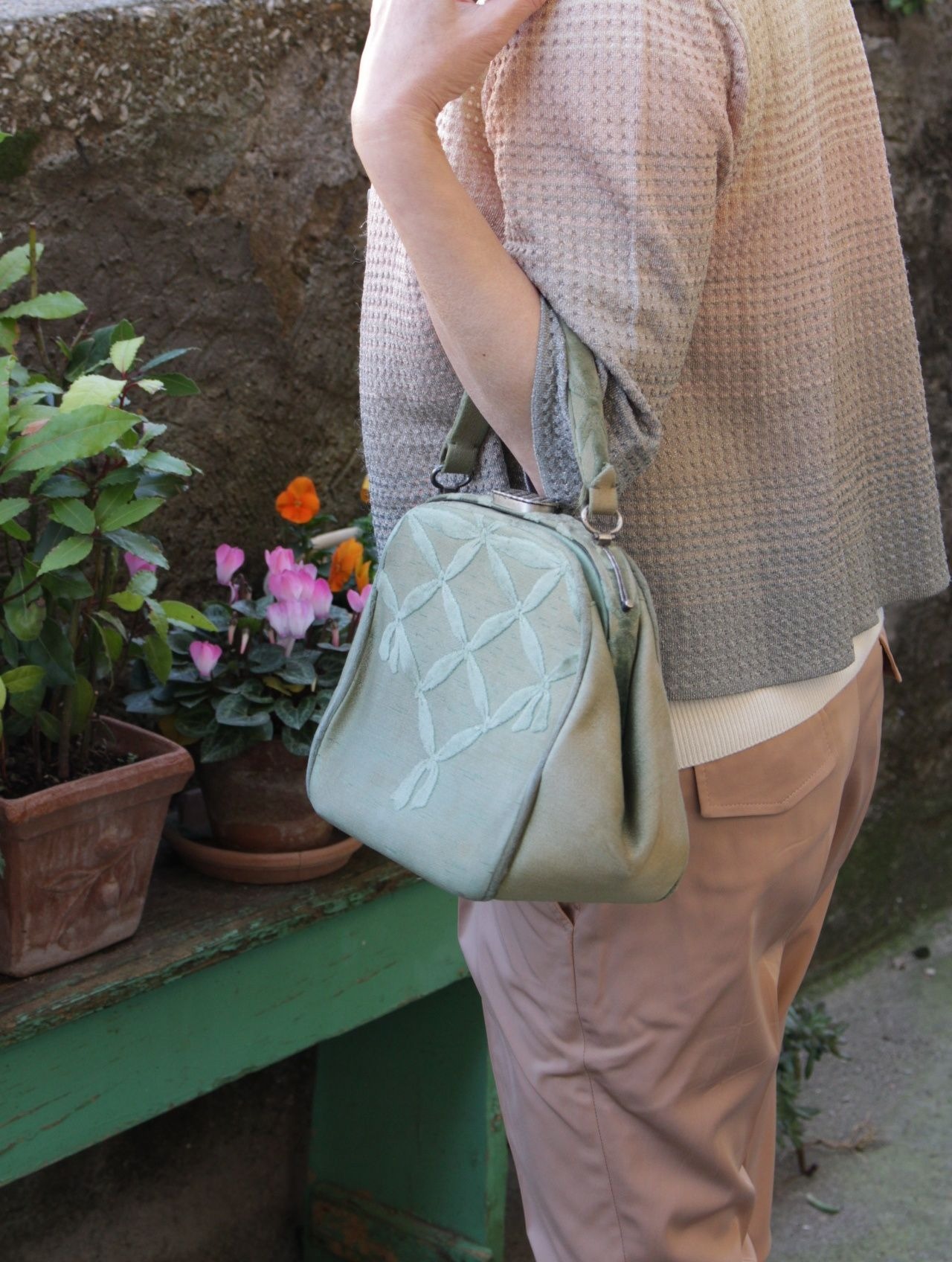 セージ色の生地は半艶。