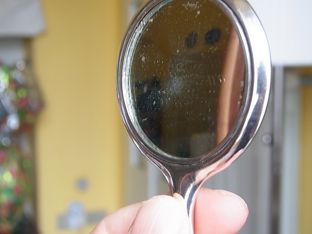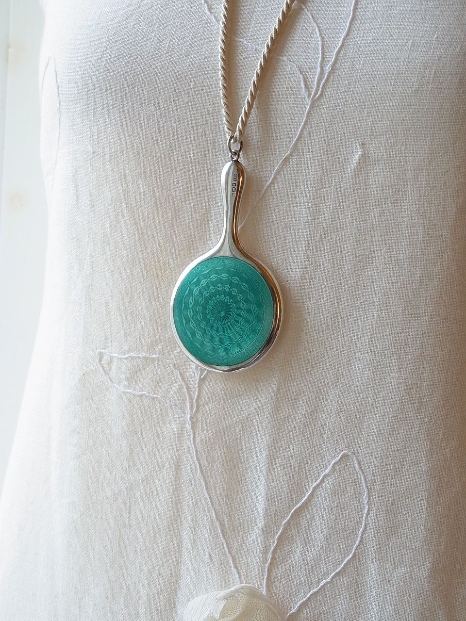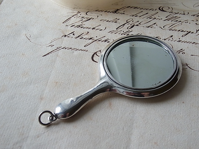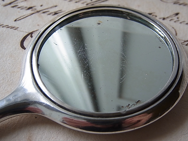 スパイミラーというと言葉が悪いですが、これは劇場などで、「まあ、今晩はどなたがいらっしゃっているのかしら?」という時に、後ろを振り向いてきょろきょろすることなく、さらりと鏡に映して確認する為のものです。