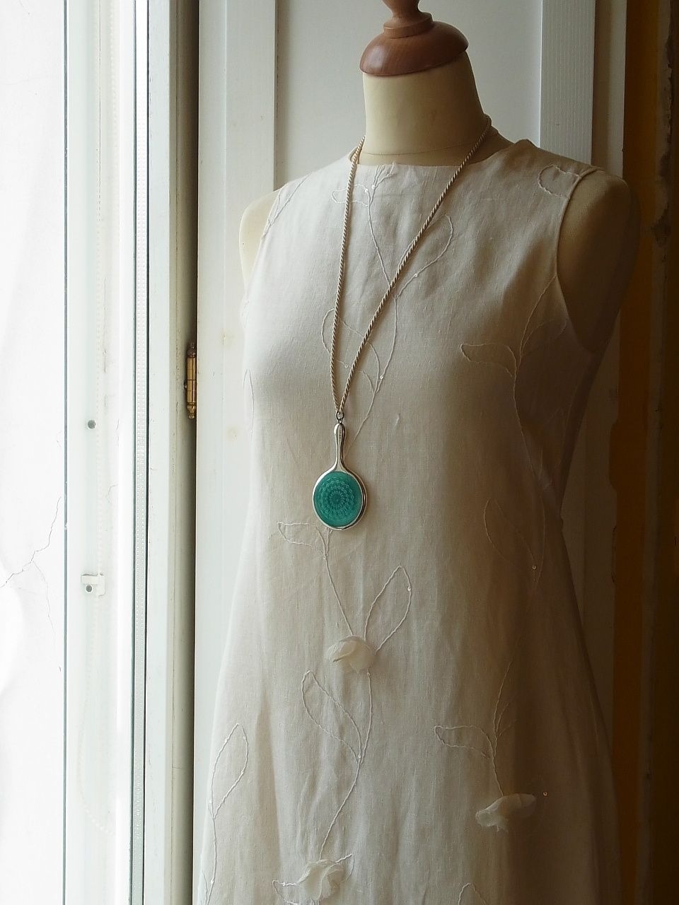 透明な深い湖のような、大変に美しいブルーグリーン色。