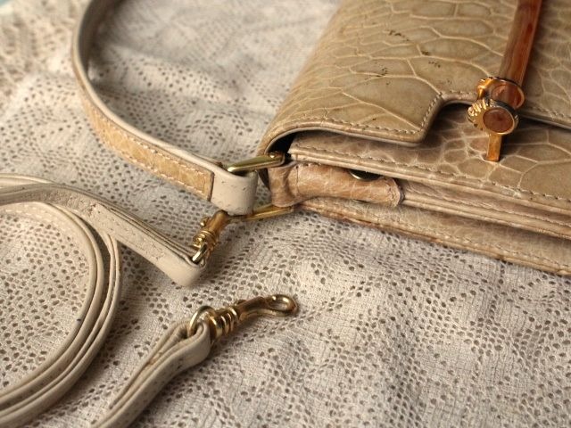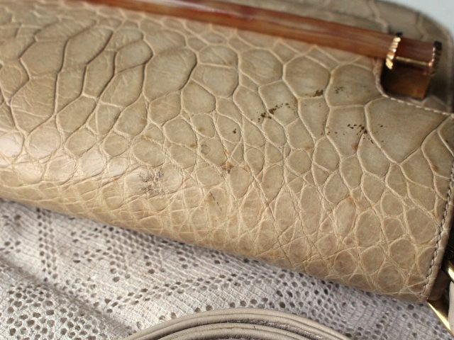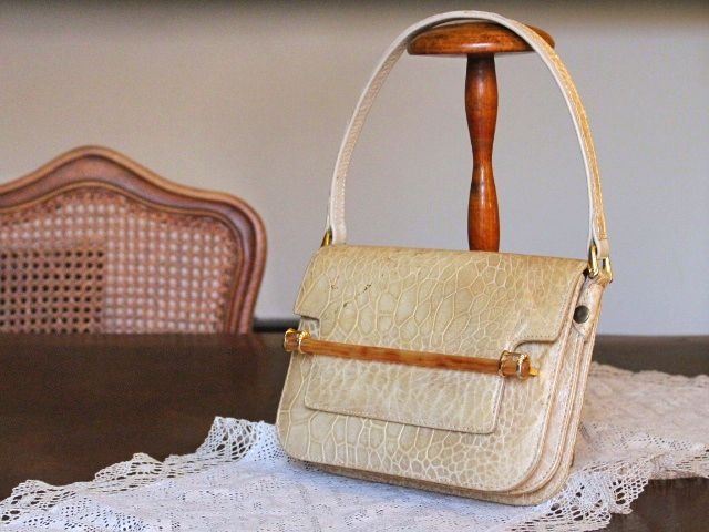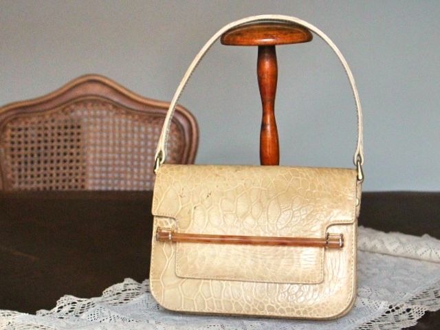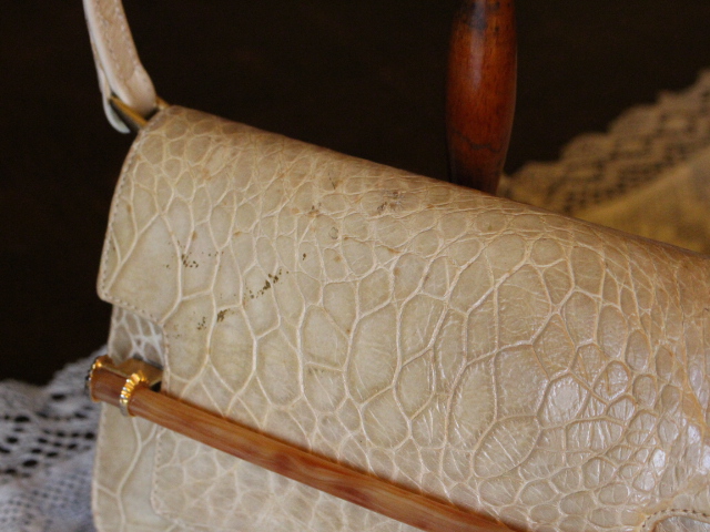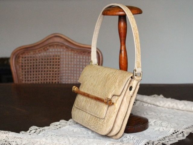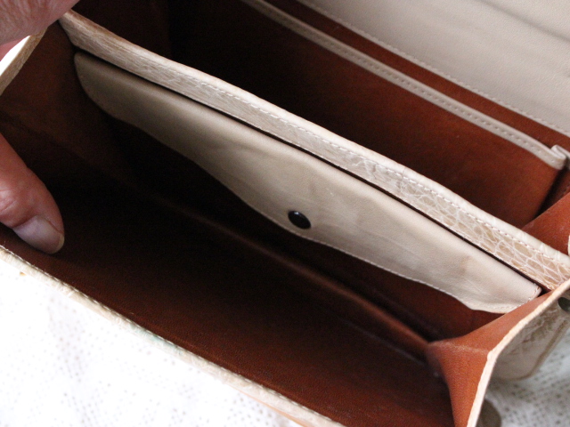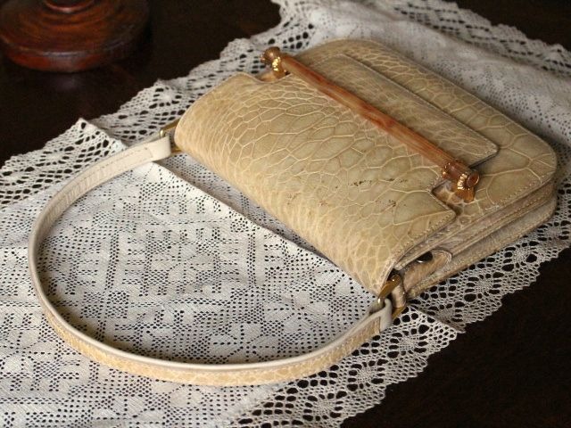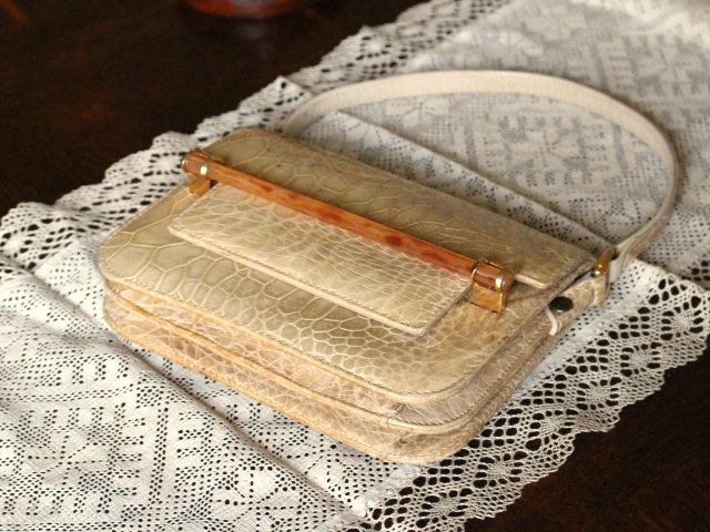 ウミガメ本革の、明るいベージュ色が品の良い、ハンドバックです。