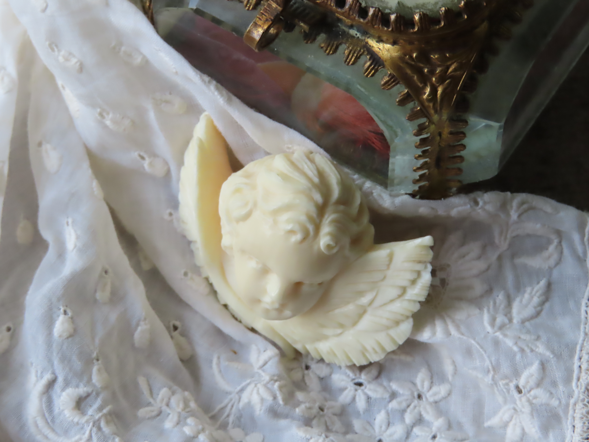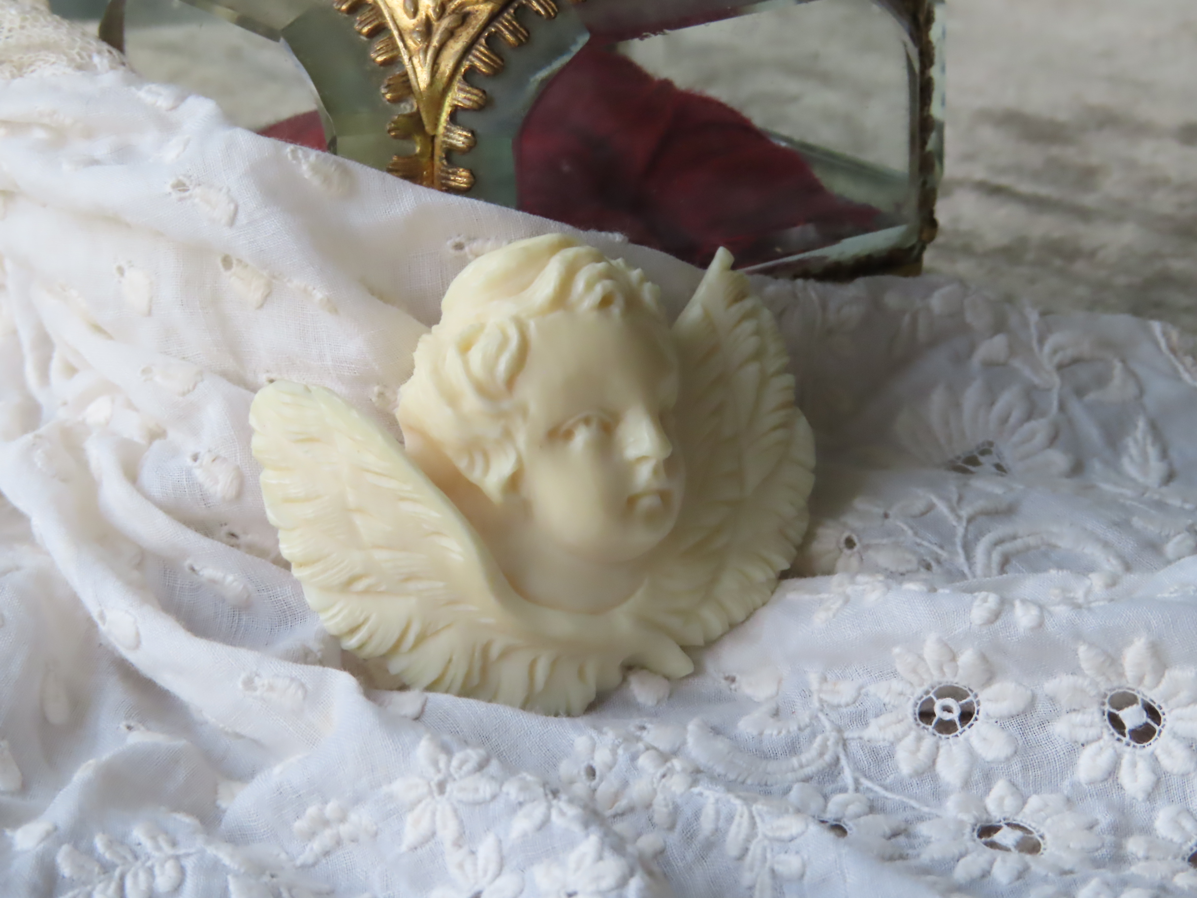 19世紀前半期の、イタリア・ローマもしくはナポリで作られた、象牙の天使です。