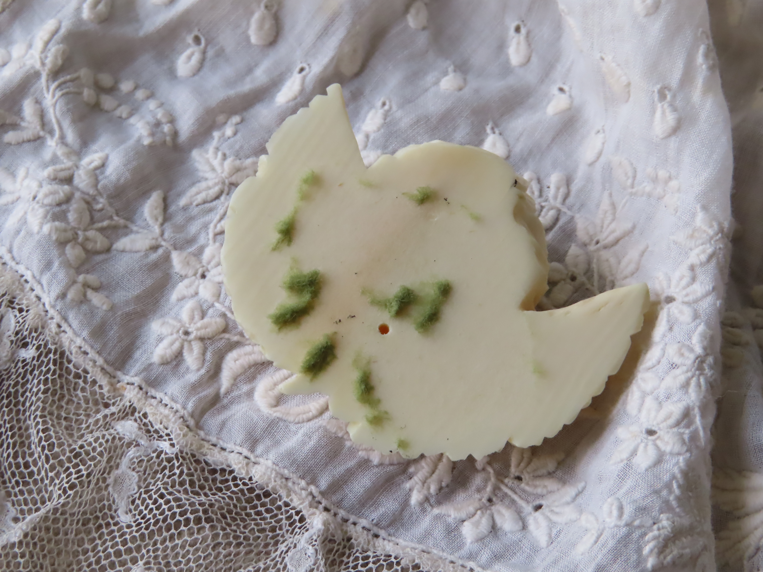 裏には、額装されていた時のビロード生地がまだ少し付いていますが、ブローチピンを付けたり、ペンダント用の金具を付けたりして、ジュエリーに加工が可能です。