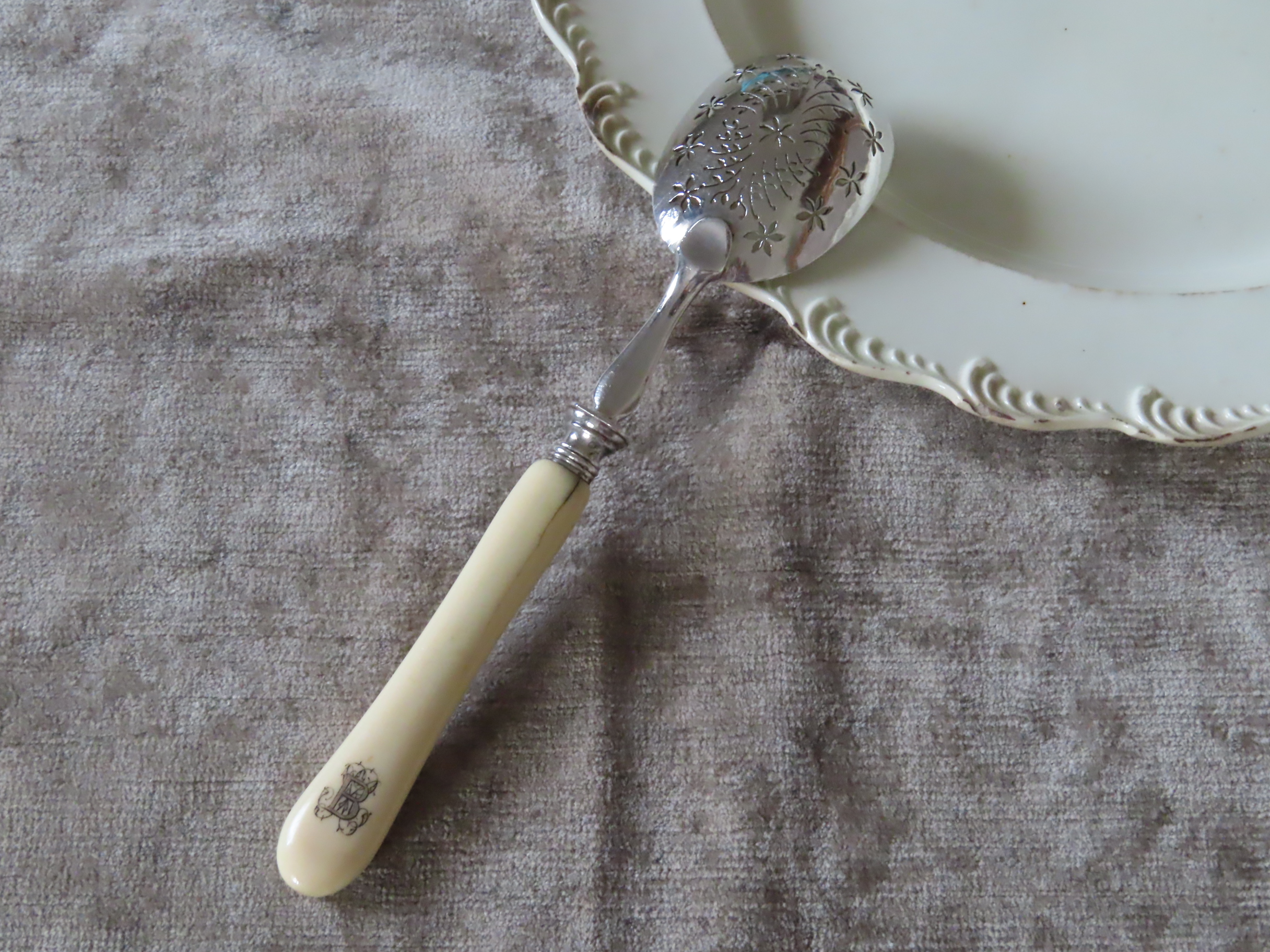 象牙の柄の形も優雅です。