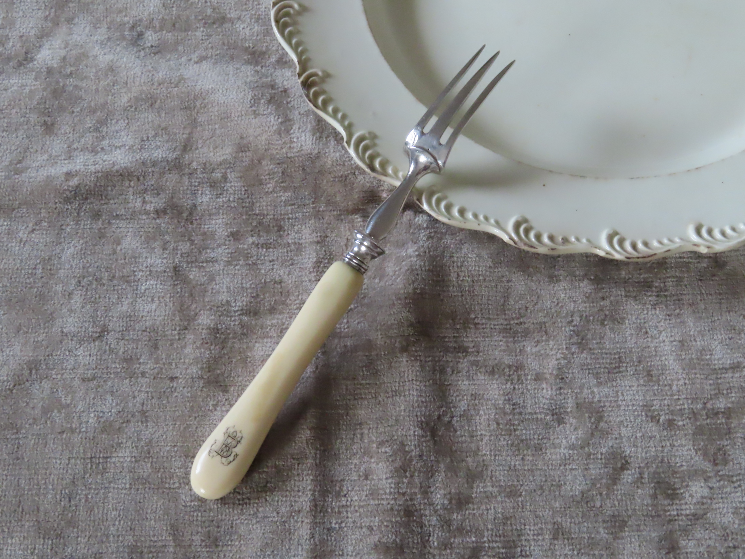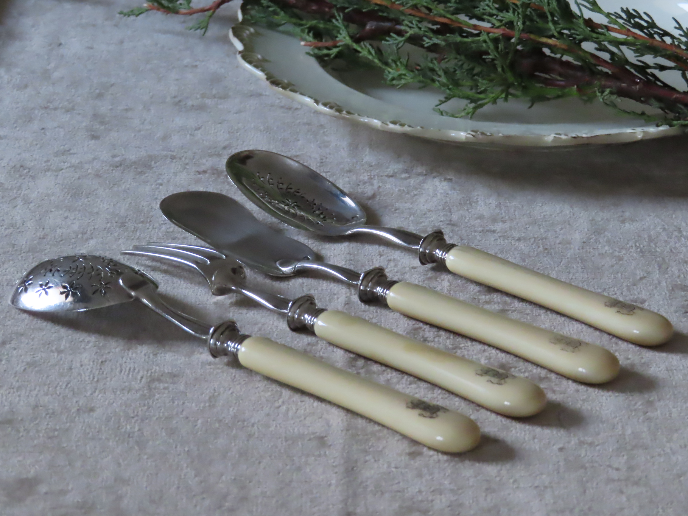 1880-1900年頃のフランスの、アンティパストやデザート用の、銀のカトラリーです。