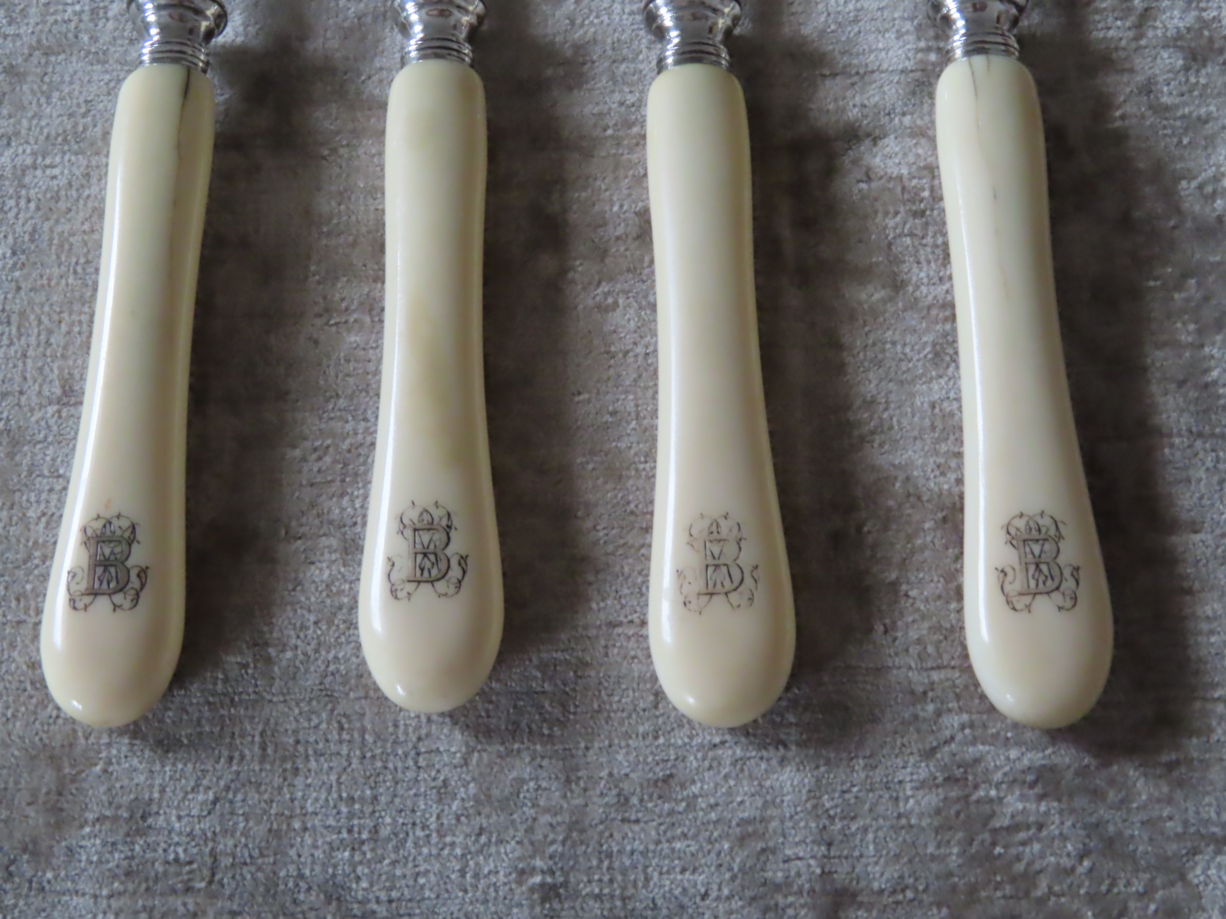 Bのモノグラムは、象牙に薄く彫り込みを入れて彩色してあります。