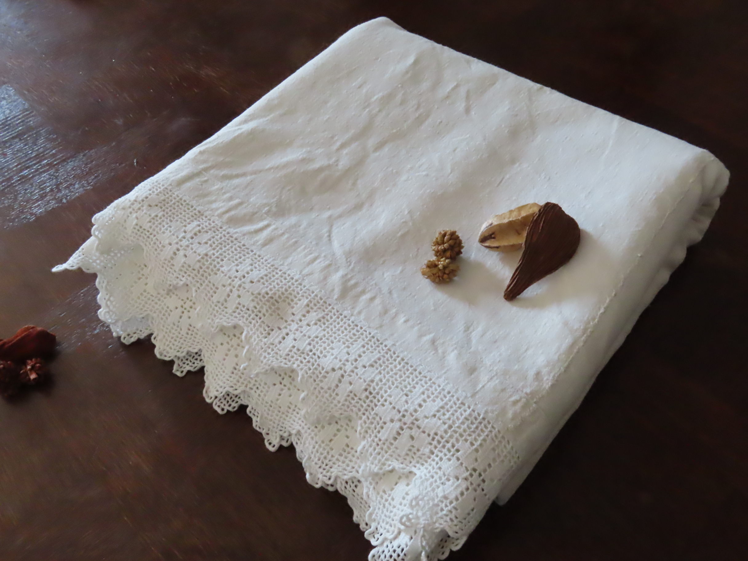 自家栽培された麻で手織りされた、アンティークリネンです。